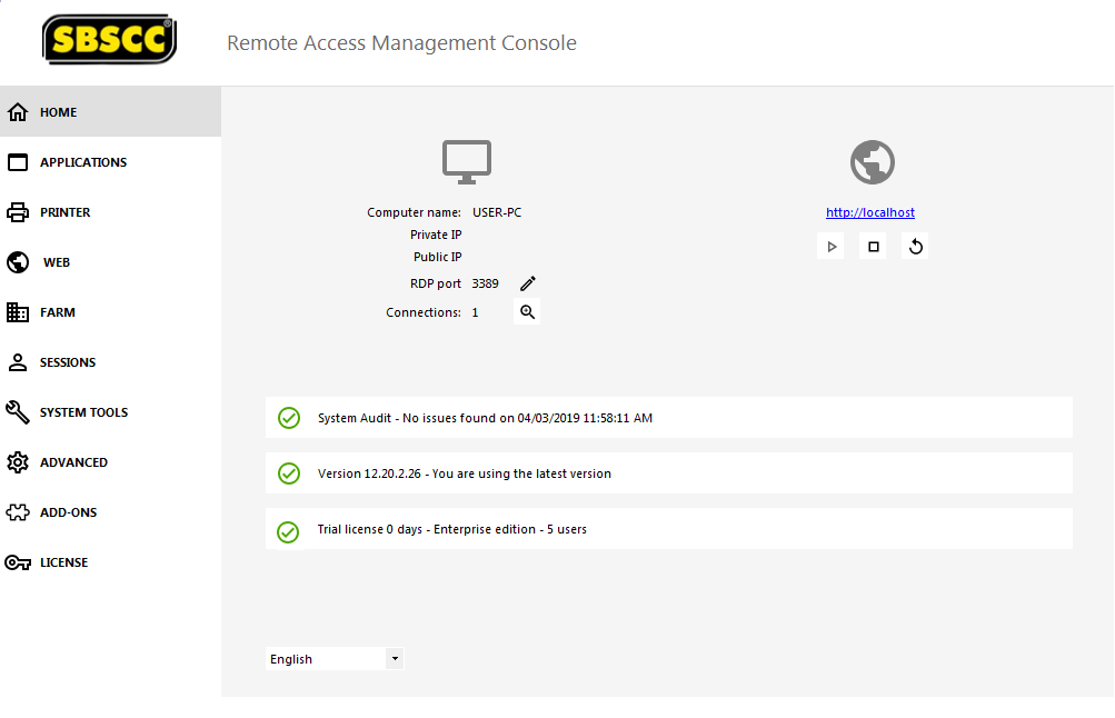 Remote Desktop Access: TSSpeedbooster enables any of your Windows from XP to Windows 10 (even Home editions) and Server 2003 to 2012 R2 to act as a Citrix or a Terminal Server. TSSpeedbooster supports concurrent Remote Desktop (RDS) connections, printer mapping, disk mapping, port com mapping, bi-directional sound, remoteFX, dual screen. Any RDP compatible client can be used to connect on a TSSpeedbooster System.